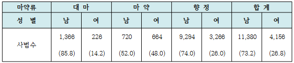 - 공급사범(밀조, 밀수, 밀매) 4,389명으로 전년 동기(5,435명) 대비 19.2% 감소