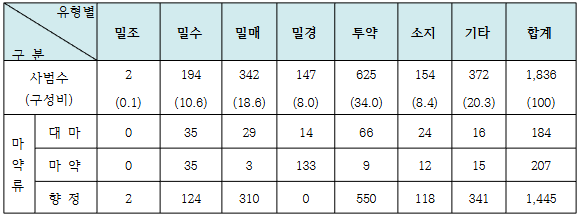 - 공급사범(밀조, 밀수, 밀매) 4,389명으로 전년 동기(5,435명) 대비 19.2% 감소